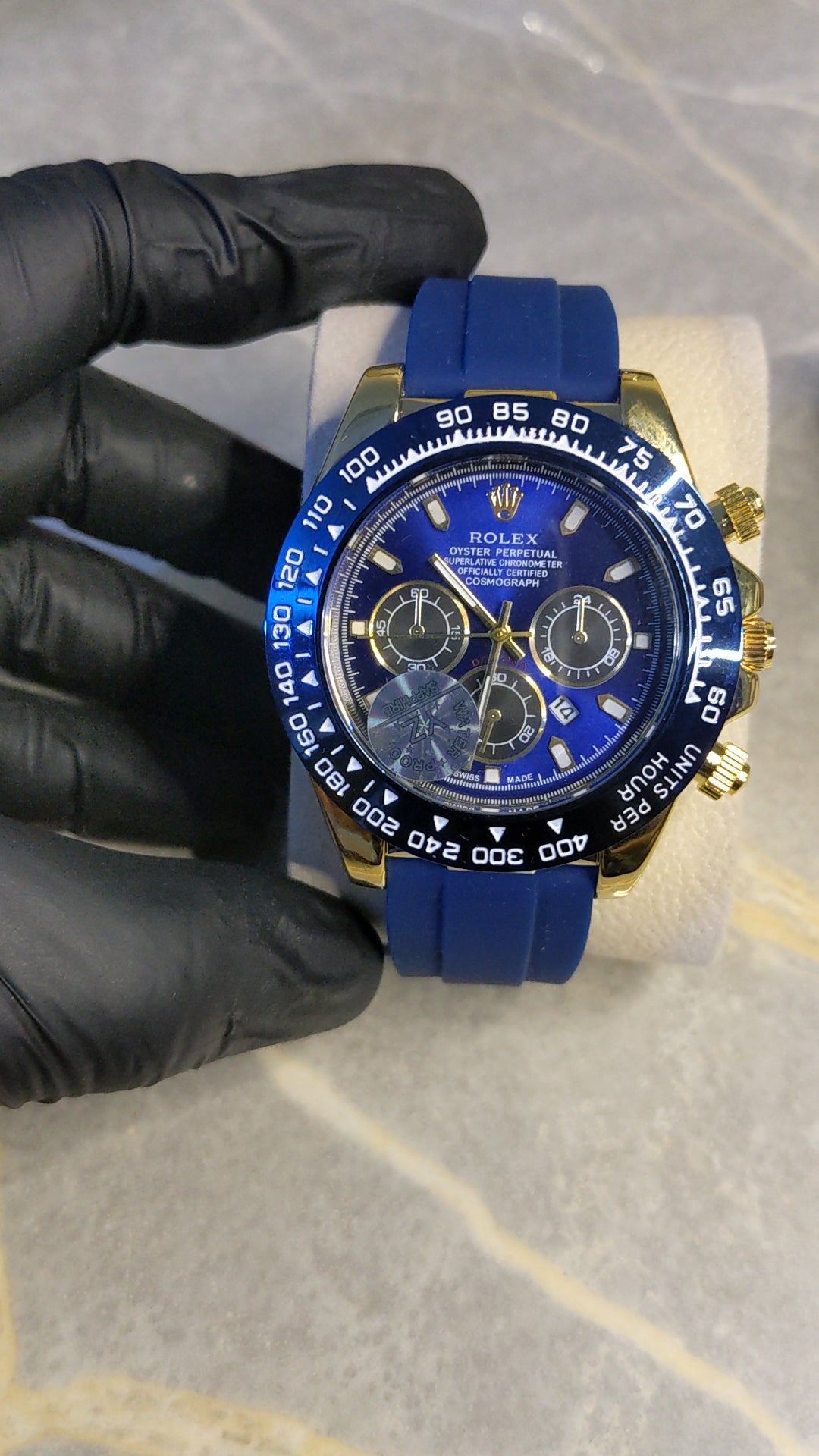 1. Blue & Gold: A stunning royal blue dial and bezel paired with a matching blue rubber strap.